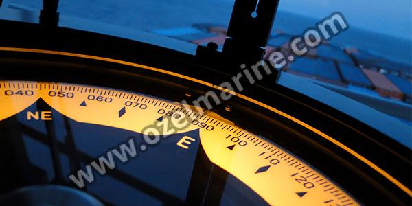 A gyro compass, to determine and display their heading by shipborne non-magnetic means, being clearly readable by the helmsman at the main steering position.
