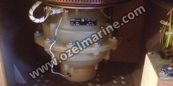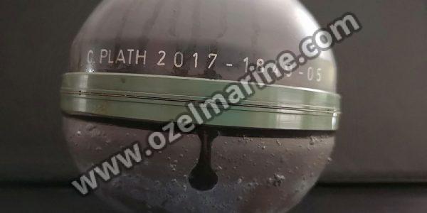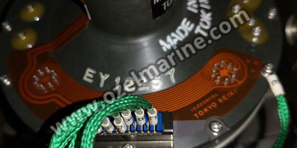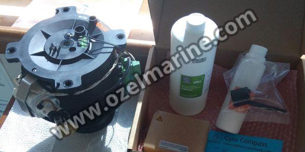 As shown at figure, the gyrosphere is the most important element of the master compass and is 108mm in diameter. This contains a 30mm thick gyro rotor having a diameter of 98mm that rotates (approximately 12,000 r.p.m.)on ball bearings installed between the rotor and the rotor shaft. The rotating direction is clockwise when seen from the south side of the gyroscope (where the lead wire is seen coming out of the shaft). A specially superior quality grease is used in lubricating the ball bearings that support the rotor. The rotor is balanced so precisely that almost no vibration is detected to affect its performance. However, if, for some reasons, you fail to adjust the rotor balance effectively, it will cause errors due to rotation related vibrations. Besides, the rotor is so constructed that the position of its center of gravity is not affected by the elasticity of the shaft caused by variations in temperature conditions. The rotor is fixed to the frame by using the pillow block.